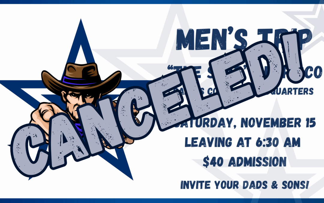 We have had to cancel the Men’s Trip to the Star this Friday due to unexpected issues at the Star. All money will be refunded to those who have signed up. We apologize for this inconvenience.
